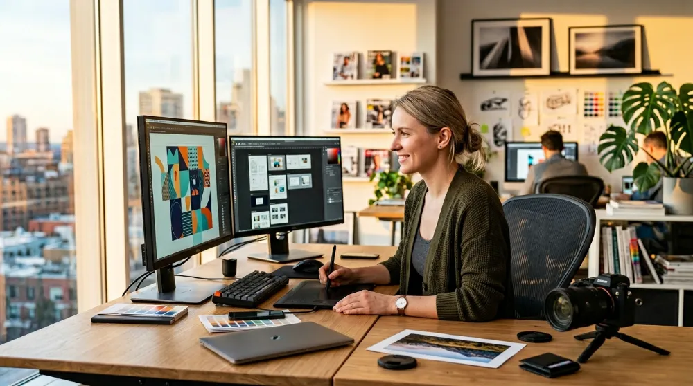 Дизайнер работает по циклу: бриф, исследование, мудборд, эскизы, сетка, макеты, проверка, препресс или экспорт. Важно владеть типографикой, сетками и контролем визуального ритма.